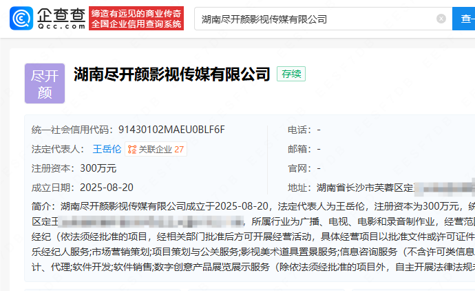李湘与王岳伦固然也曾离异,但他们在交易畛域的合营却并未罢手,企查查APP自满,近日,湖南尽开颜影视传媒有限公司征战,注册本钱300万元。在该公司中,李湘持有99%股权,王岳伦持有1%股权并担任法定代表东谈主、实行公司事务的董事、司理职务。最新结伙公司的股权分派模式与之前如出一辙。