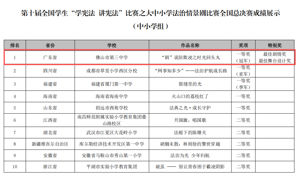 喜报!在第十届寰球粹生“学宪法 讲宪法”比赛之大中小学法治现象剧寰球总决赛中,由佛山市东谈主民放哨院与佛山市第三中学共同编排、全心打造的未成年东谈主法治现象剧《“剧”说防耻辱之时光回头丸》,得手斩获中小学组一等奖(冠军)以及最好剧情奖、最好舞台贪图奖!
