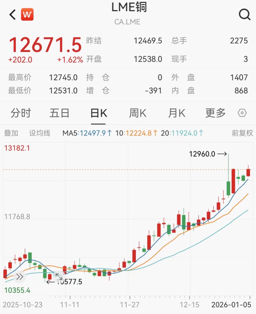格力的表态并非牛嚼牡丹,背后是铜价创记录高潮带来的全行业老本狂躁。国外商场上,LME铜价2025年全年涨幅达42.52%,2025年12月29日盘中更是涉及12960.9好意思元/吨的历史高位。